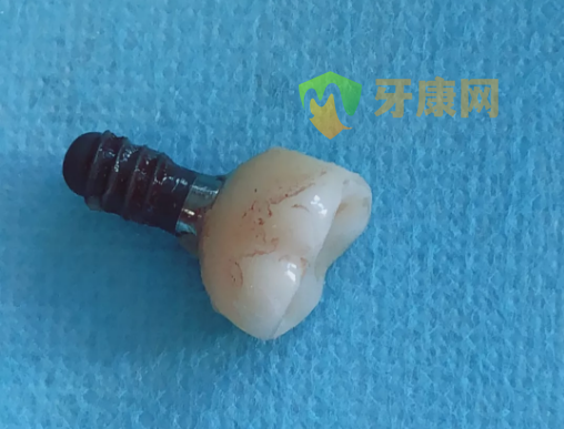 左上后牙區種植體(4.8*8)植入3月后完成冠修復。冠修復2月后,患者復診,訴冠松動伴咬物不適。