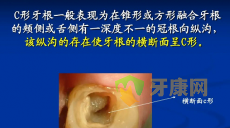 一型近中根管與遠中根管融合成連續的弧形呈字母C狀(15.7%)