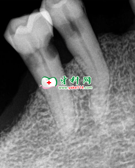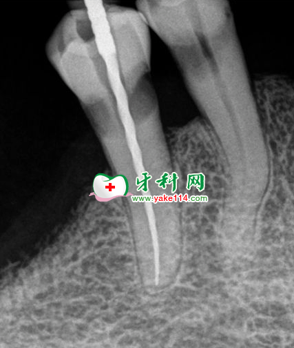 治療:根管治療術(shù)+復(fù)雜充填術(shù)。