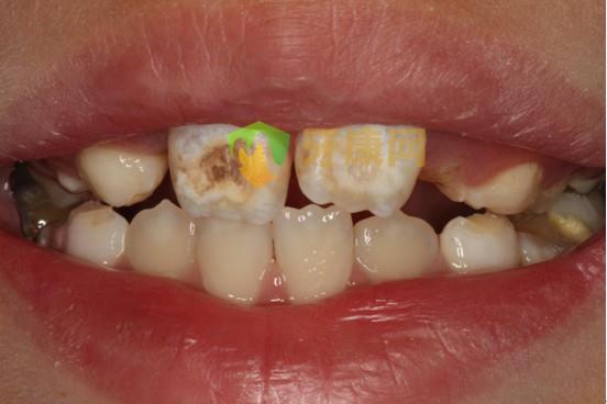 現(xiàn)病史:患兒替牙期,上中切牙萌出,牙面齲壞,無疼痛,影響美觀,今家長帶其來檢查。